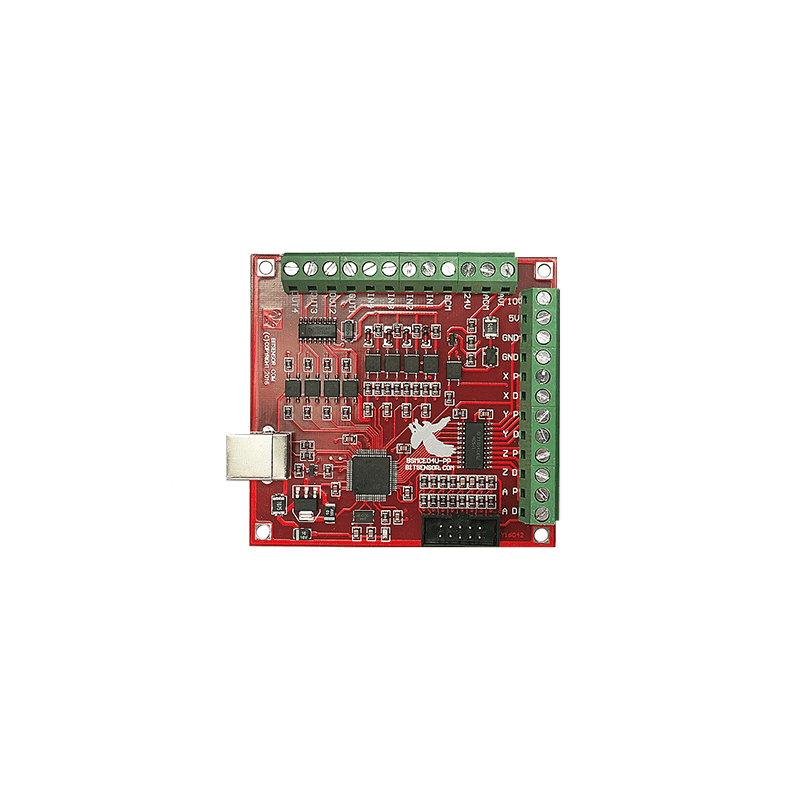 لوحة تحكم واجهة (Breakout Board) عالية الأداء مصممة للتحكم في آلات CNC (التحكم الرقمي باستخدام الحاسوب) عبر منفذ USB. صُممت هذه اللوحة للعمل مع برنامج Mach3 الشهير ، وتُعتبر حلاً اقتصادياً وفعالاً للهواة والمحترفين على حد سواء، حيث تدعم التحكم في 4 محاور (X، Y، Z، A) مع إمكانية توصيل محركين للمحور Y للتحكم بالبوابة . توفر اللوحة مجموعة من المداخل والمخارج المعزولة بصرياً لضمان استقرار الإشارة وحماية الجهاز.