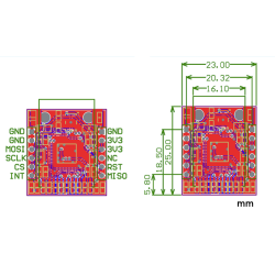 Control interface form: 3.3V TTL level, SPI interface; 2 * Single row needle