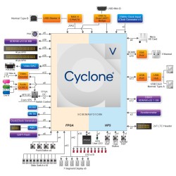 منصة تطوير وتعليمية قوية مبنية حول معالج Altera Cyclone V SoC FPGA، والذي يجمع بين معالج ARM Cortex-A9 ثنائي النواة ومرونة FPGA في شريحة واحدة . صُممت هذه اللوحة خصيصاً لتلبية احتياجات التعليم الجامعي والمشاريع البحثية والتطبيقات الصناعية، حيث توفر بيئة متكاملة لتعلم أنظمة الحاسوب المدمجة، معالجة الصوت والفيديو، وتصميم الدوائر الرقمية بشكل عملي .