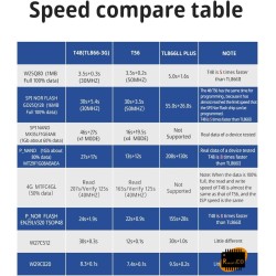يدعم ذاكرة NAND EMMC عالية السعة حتى 256 جيجابايت وسرعة برمجة أعلى بكثير. يدعم شرائح الجهد العالي، مثل سلسلة 27Cxxx، وVPP بحد أقصى حتى 25 فولت، وهو ما لا يمكن لمبرمج TL866II تحقيقه. نقوم بإنتاج دفعات صغيرة للشرائح عالية السعة.