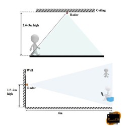 This product is mainly used in indoor scenes to sense whether there is a moving or micro-moving human body in the area, and output the detection results in real time. The farthest sensing distance can reach 5 meters, and the distance resolution is 0.75m.