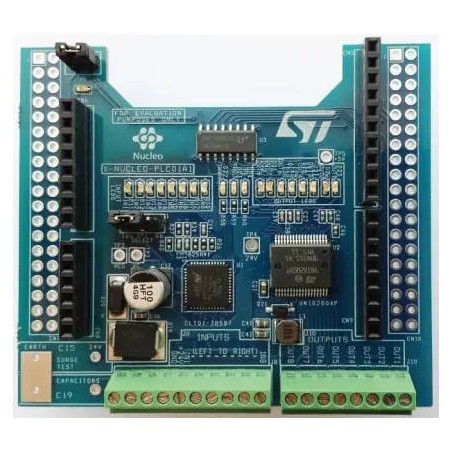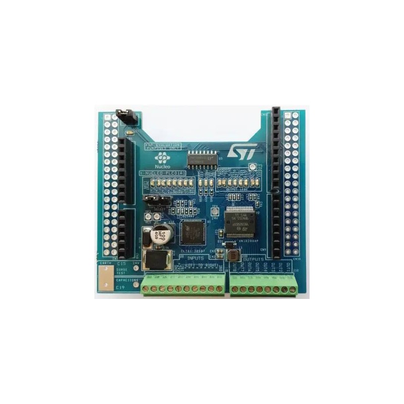 لوحة تقييم وتوسعة صناعية متكاملة، مصممة لإضافة وظائف PLC (المتحكم المنطقي القابل للبرمجة) إلى لوحات STM32 Nucleo . تعتمد اللوحة على دائرة VNI8200XP (مرحل الحالة الصلبة عالي الجانب) للمخرجات، ودائرة CLT01-38SQ7 (مصفوفة إنهاء رقمية ثمانية) للمدخلات . توفر هذه اللوحة حلاً مثالياً للمطورين والمهندسين الذين يعملون في مجال الأتمتة الصناعية والتحكم، حيث تسمح باختبار وتطوير تطبيقات PLC بسرعة وكفاءة .