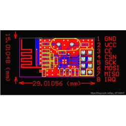 Now we make a breakout for nRF24L01 , and build the smallest system for it , also the wireless circuit . You can use it in you project without any wireless design , just need to leave a 8 pins interface to this module , use the SPI interface to control the module on transferring data.