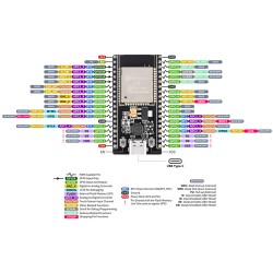 This is the NodeMCU development board based on ESP32, features WiFi+Bluetooth connectivity, onboard CP2102 and keys. What's more, all the I/O pins of ESP32 module are accessible via the extension headers.