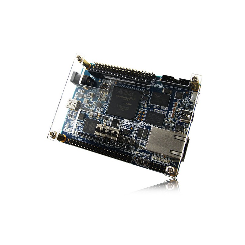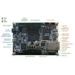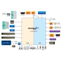 A powerful System-on-Chip (SoC) development platform built around the Altera Cyclone V SE FPGA. This board uniquely combines a dual-core ARM Cortex-A9 processor with flexible FPGA fabric in a single device, delivering high performance and ultimate design flexibility. The kit is available in two variants that share identical hardware but differ in software content and documentation to suit different developer needs