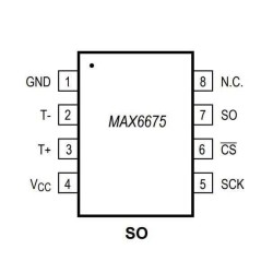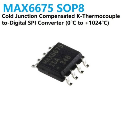 The MAX6675 SMD (Surface Mount Device) is a K-type thermocouple-to-digital converter designed for high-temperature measurements, outputting a 12-bit SPI-compatible digital signal with integrated cold-junction compensation for temperatures up to +1024°C.