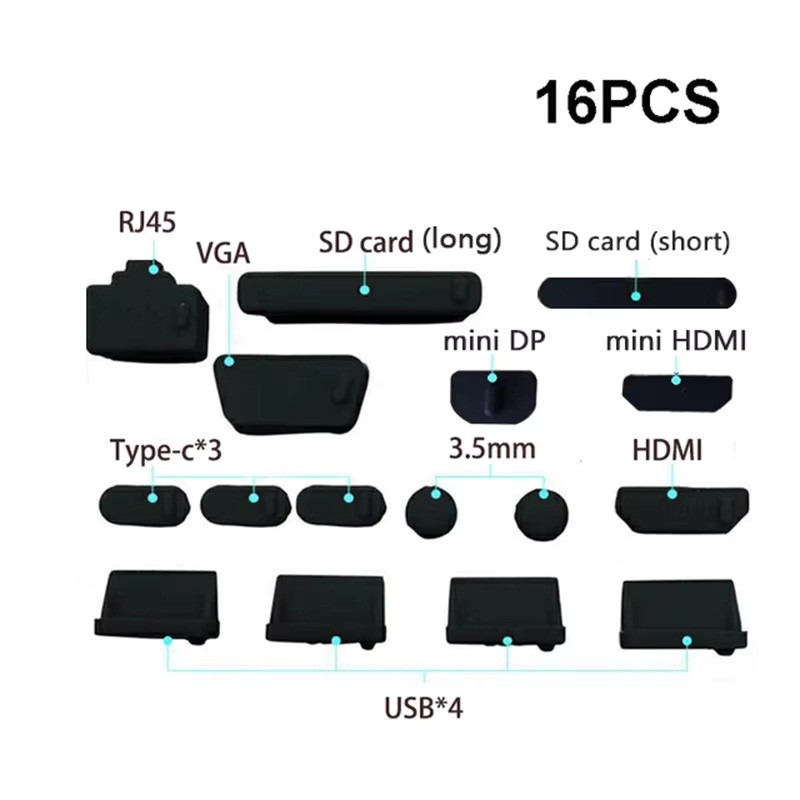 16Pcs/set Universal Anti Dustproof Notebook Port Plug Silicone Protector USB Elastic Laptop Computer Cover Stopper