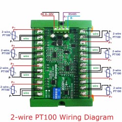 The PTA8D08 module is engineered for ease of use, with a straightforward wiring system that supports both 3-wire and 2-wire PT100 sensors. The RS485 bus wiring diagram is provided to ensure a seamless connection to other devices. With the ability to cascade up to 247 modules, the PTA8D08 is a scalable solution that can grow with your monitoring needs. Whether you're a professional in the field of thermostatic controls or a DIY enthusiast, this module is designed to meet your temperature monitoring requirements with precision and reliability.