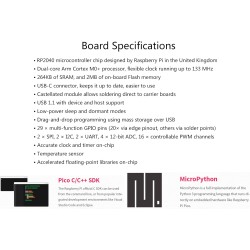 8 × Programmable I/O (PIO) state machines for custom peripheral support.