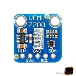 VEML7700 is a high accuracy ambient light digital 16-bit resolution sensor. It includes a high sensitive photo diode, a low noise amplifier, a 16-bit A/D converter and supports an easy to use Gravity I2C interface. It outputs a digital signal directly and no need for complicated calculations.