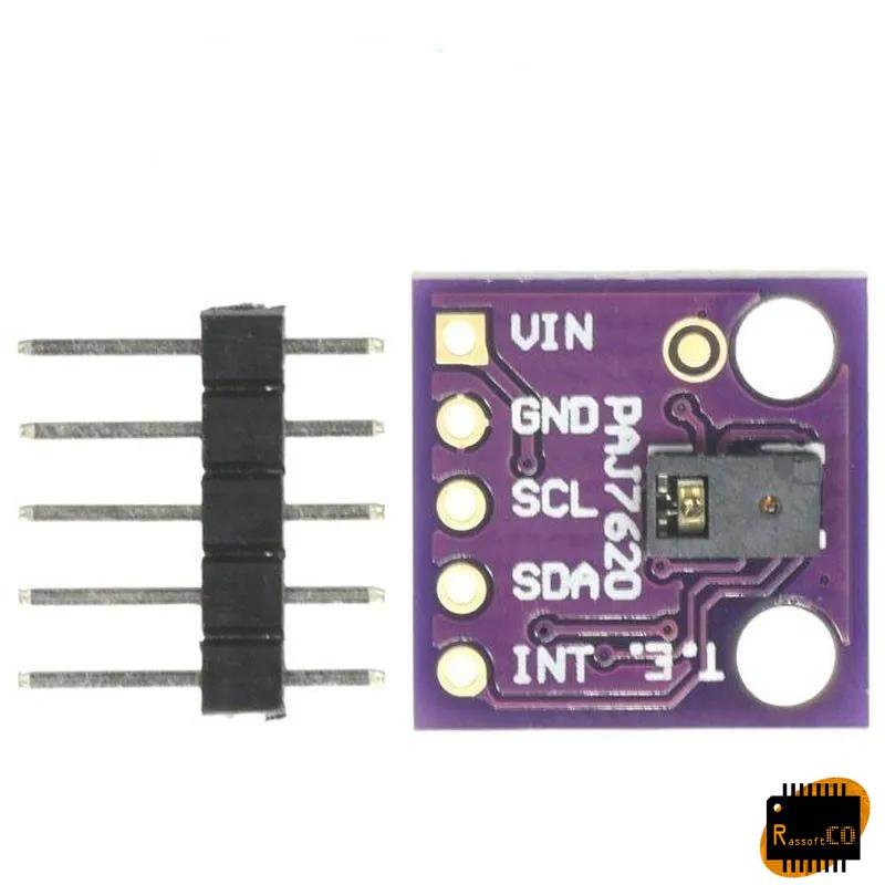 PAJ7620 gesture sensor can recognize 9 gestures. Up, down, left, right, forward, backward, clockwise, counterclockwise and wave. These gesture recognition is easily accessible through the I2C bus. PAJ7620 also has a built-in approach detection to recognize the approach or departure of objects. PAJ7620U2 is designed with great flexibility in terms of power saving mechanism. PAJ7620U2 is designed to work from 2,8V to 3,3V over -40 °C to + 85 °C, and the pull-up voltage for I2C bus and interrupt line is 1,8V to 3,3V.