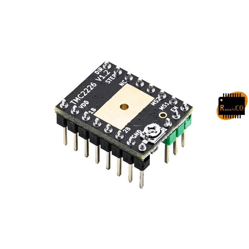 The TMC2226 is an ultra-silent motor driver IC for two phase stepper motors. TRINAMICs sophisticated StealthChop2 chopper ensures noiseless operation, maximum efficiency and best motor torque. Its fast current regulation and optional combination with SpreadCycle allow highly dynamic motion while adding. StallGuard for sensorless homing. The integrated power MOSFETs handle motor currents up to 2A RMS with protection and diagnostic features for robust and reliable operation. A simple to use UART interface opens up tuning and control options. Store application tuning to OTP memory. Industries’ most advanced STEP/DIR stepper motor driver family upgrades designs to noiseless and most precise operation for cost-effective and highly competitive solutions.